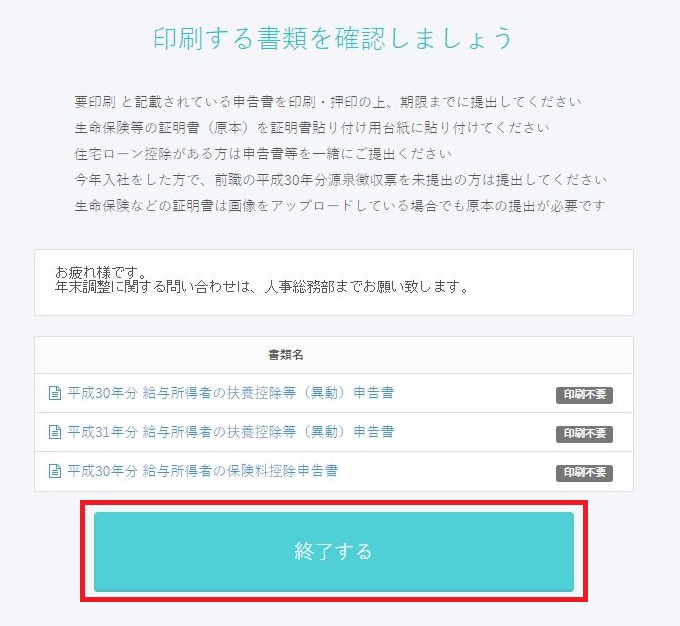 「年末調整書類提出のお願い(提出期限11/05(水)) 」