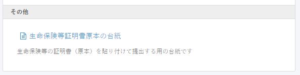 画面下に表示されている、「生命保険等証明書原本の台紙」を印刷